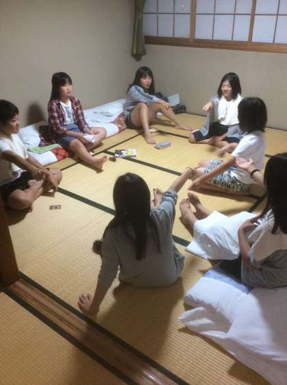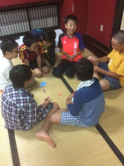 就寝前の自由時間は、部屋でカードゲームなどをして過ごしています。