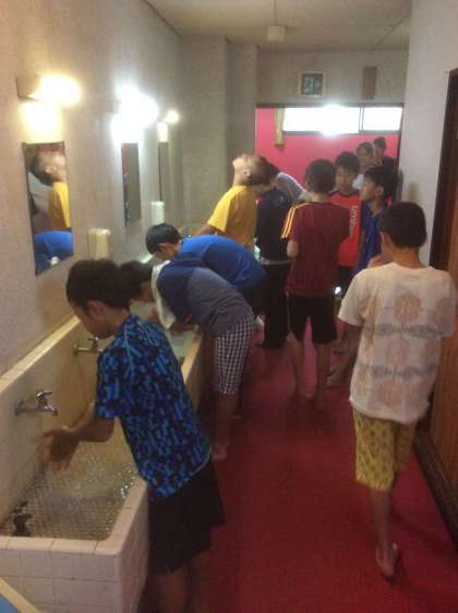 6時30分、起床、洗面。よく眠れた子が多いようです。