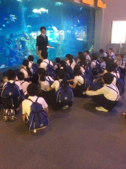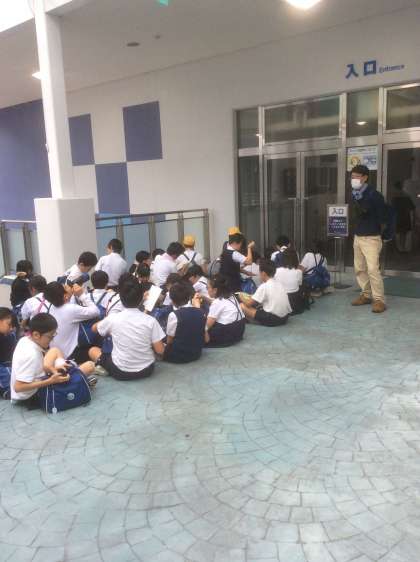 一番乗りです。大水槽前で注意事項を聞いたあと、グループ活動開始です。