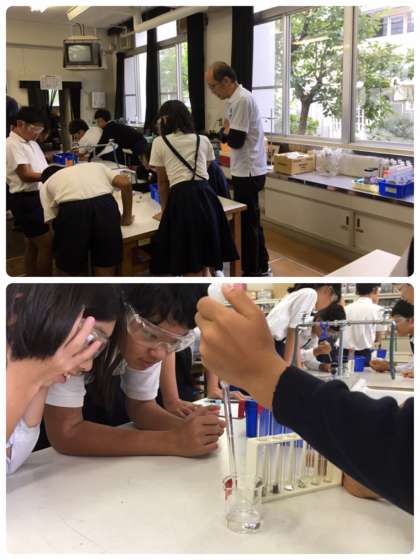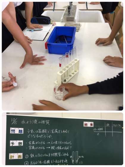 6年生は、理科の授業で「水溶液の性質について」の実験をしていました。理科支援補助員の木谷先生も入ってくださっています。