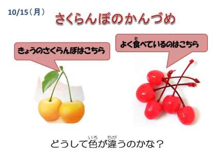 一番上の写真の左は6月の給食に出た生のさくらんぼ、右は今日の給食の缶詰のさくらんぼです。