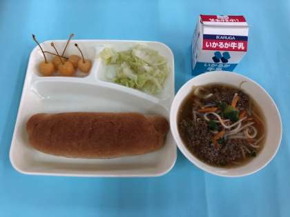 今日の給食(缶詰のさくらんぼ)