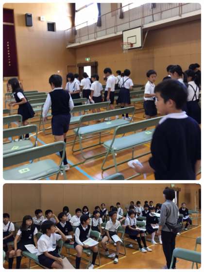 今日は、就学時健康診断があります。5年生が準備をしてくれています。保健の先生から今日の予定や注意を聞きました。