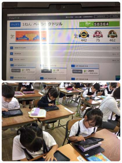 今日は低学年は、タブレットタイムでした。算数や国語を進めています。グレードが上がってエクセレントが出ている児童もいました。