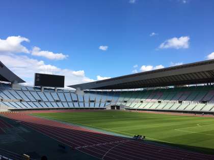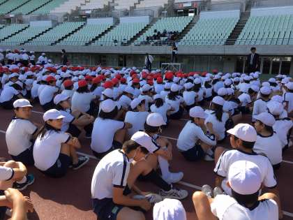 六年生はスポーツ交歓会で長居スタジアムに来ています。午後からはヤンマースタジアムで競技です。