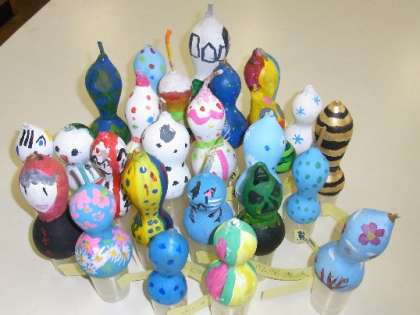昨年度、栽培して収穫したひょうたんに色付けをしました。