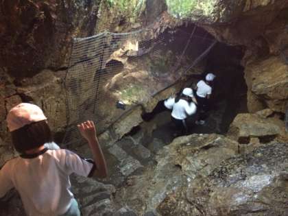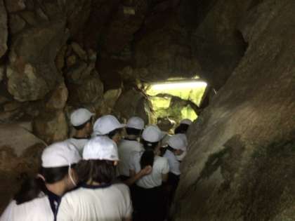 鍾乳洞に到着しました。洞内に入ると、ものすごくひんやりしています。狭い道をどんどん進みます。何千年何万年かけてできた世界を、少しの間堪能しました。そして、そこを抜けると・・・。