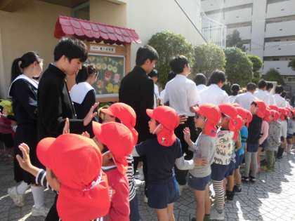 北稜中学校の3年生のお兄さんお姉さんが、幼稚園に来てくれました。
