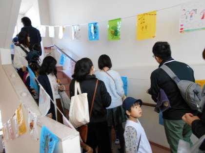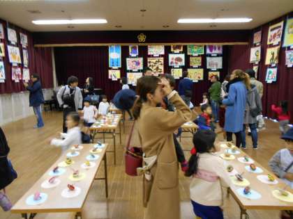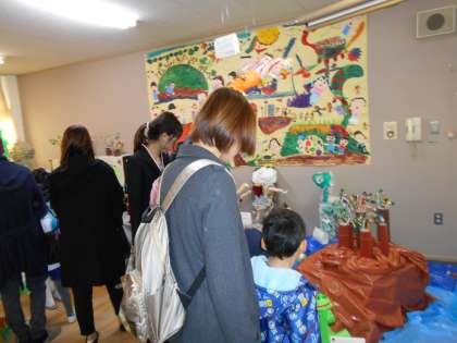 土曜日に、幼稚園の作品展を開催しました。各保育室や階段・ホールに、子どもたちの作品がずらりと展示されました。かわいらしい作品、迫力のある作品、かっこいい作品、思わず微笑んでしまう作品など、一人一人の発想の素晴らしさに感動しました。