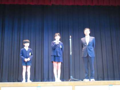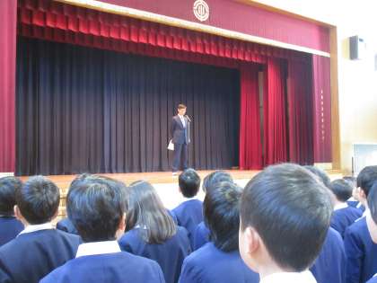 今日から三学期がスタートしました。校長先生から転入生の紹介がありました。また今年は新しい学年になる年ですのでお手本となるような行動をたくさんみせてくださいというお話がありました。校歌や市歌も上手に歌えました。新しい靴箱が設置され、明日から1階で履き替えます。