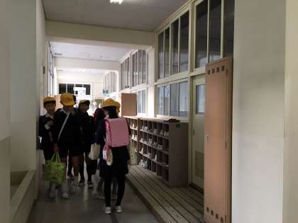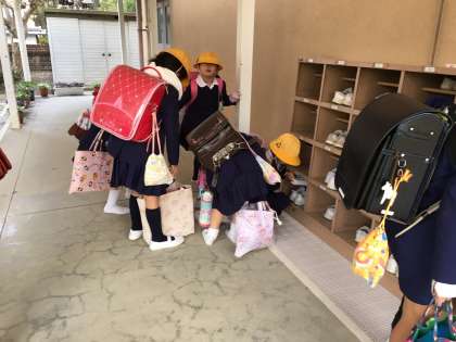 くつのルールが変わります。今日から、朝登校したら1階で、下靴から上靴にはきかえます。トイレは、スリッパになります。