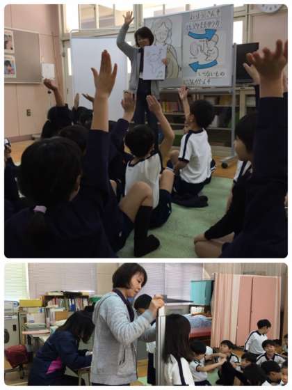 発育測定が行われています。伊藤先生から赤ちゃんクイズが出題されています。おなかの中の赤ちゃんのお話をしてくださいました。