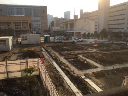 工事が進んでいます。プレハブ校舎は3月には建設完成予定です。