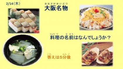今日の一口メモも大阪名物にちなんだクイズでした。