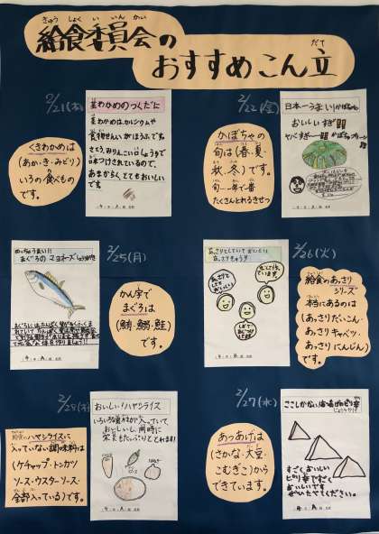 給食委員会のおすすめ献立を給食室前に掲示しています。