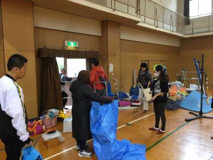 工事に伴い、講堂での使用が増えるため講堂を広く活用できるよう片づけを行いました。休日にもかかわらず多くの地域の方々がご協力してくださいました。ありがとうございました。