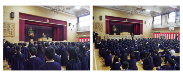 学校長からはこの1年の振り返りと成長についての講話があり、生徒たちは真剣な面持ちで耳を傾けていました。