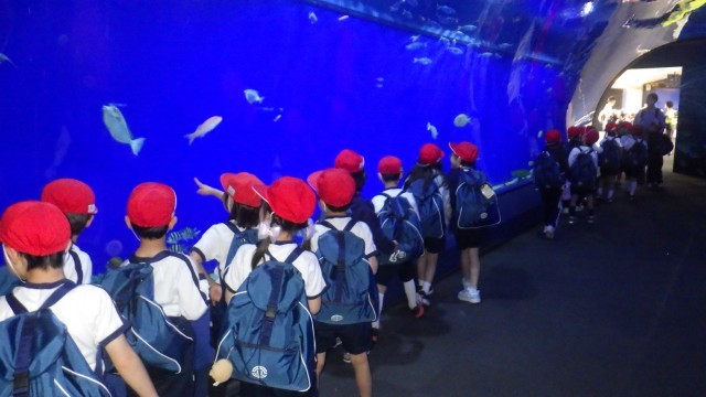 今日は2年生の遠足で海遊館に行きました。たくさんの生き物だけでなく、餌やりの様子も見ることができて、とても興奮していました。