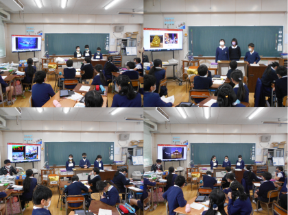 英語の時間に、大阪の名所を紹介するスピーチをグループで考えて発表しました。5年生...