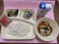 2月24日の給食は「ヤンニョムチキン、切干し大根のナムル、とうふのスープ、ごはん...