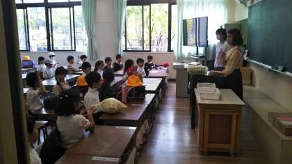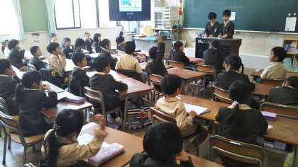 1年生の朝の会で、5・6年生の保健委員のお兄さんお姉さんが健康調べをしてくれます。みんな聞かれたことに「はい」としっかりお返事しています。