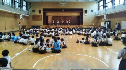 今日は全校児童をA・Bに分けて行う「たてわり班遊び」の2回目がありました。前回と交替して半分は体育館、残りの半分は各教室でクイズゲームをしました。楽しい一日がスタートしました。