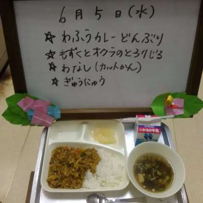 今日の給食は、「和風カレー丼」
