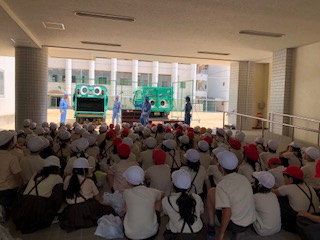 環境事業局の方に来ていただき、パッカー車での収集についてお話を聞きました。