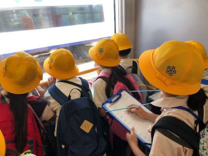 大阪市のどの地域にはどんな特色があるかを実際に見て学びます。電車の窓から「この駅の近くには川がある」「ビルが多いところ」など地域の様子を見つけました。