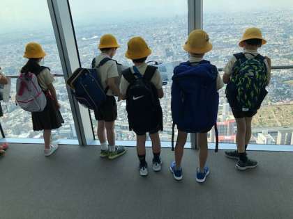 あべのハルカスからは、東西南北4つの方位を観察し大阪市の様子を記録します。でもその前に「たか〜い!」「こわい!」「きれい!」「遠くまで見える!」・・・素直な感想が聞かれましたよ。