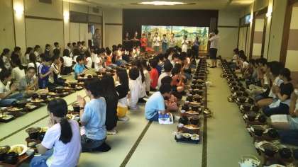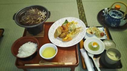 夕食は座敷に座っていただきます。お膳には豪華な夕食。