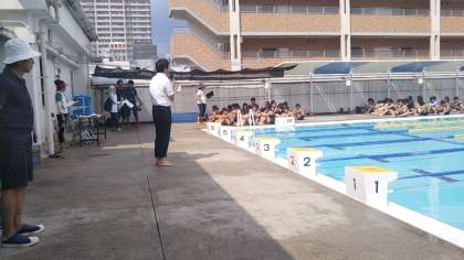 本日午後から恒例の「水泳交歓会」が行われました。滝川小学校の6年生児童を本校に招き、合同で水泳競技を行い互いに大きな声援を送りました。来年は共に中学生になります。近隣の地域同士の交流もこの機会に深まりましたね。