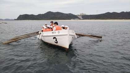 カッター活動が終わりました。雨がポツポツ降ってきましたが、プログラムには影響ありせん。みんな疲れましたが、元気です。