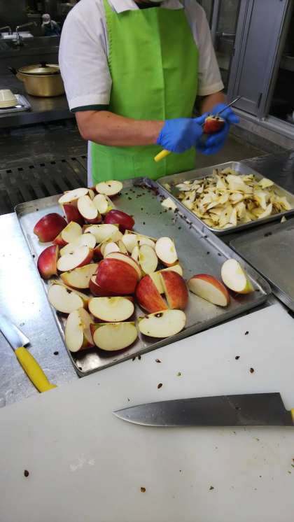 今日の堀川小学校の給食でりんごは、何玉使ったでしょうか?