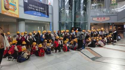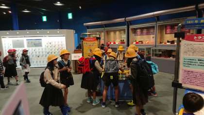 あいにくの雨でしたが、科学館に到着した子どもたちは、グループに分かれて、元気に活動しています。