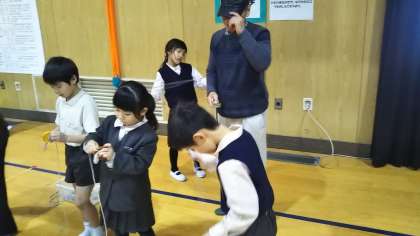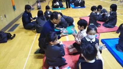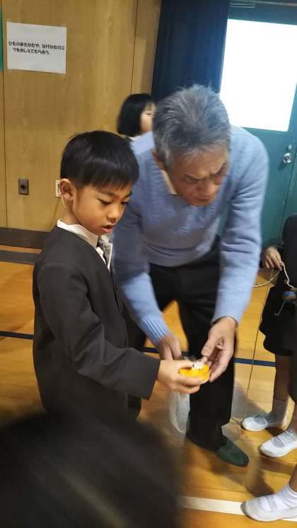 1年生は日本の昔遊びを地域の方々に教えてもらいました。
