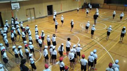 5年生は体育の時間に、「体幹を鍛えるトレーニング」を行いました。北区内の小学校でも実践されている方にコーチをお願いし、今回は2回目です。寒い中でも体育館では裸足で行います。足の裏全体で自分の身体をバランスよく動かし、本来の身体機能を発揮できるようにする。また、ケガをしにくい身体づくりにもなるとのこと。みんな集中して楽しく運動することができました。