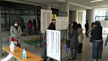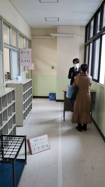足元の悪い中、ご来校いただきありがとうございました。分散にご協力いただきましたことで、混乱なく約6割の方々のお手元に配付させていただきました。あと2日間も同様にお待ちしております。児童同伴ではなく、保護者の方のみでお越しください。また、都合でご来校いただけない場合は、ご相談ください。