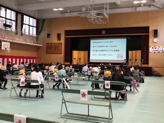 おうちの人と、こうどうのいすに はじめて すわりました。