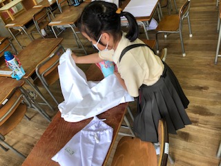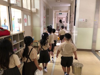 午後のグループのお友だちは、給食の食缶を返しに行きました。