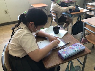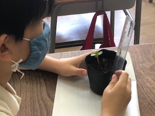 種まきは、休業中に先生がしていたので、芽が出たところからの観察です。