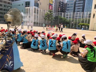 映像で、学校中の友だちからのお祝いメッセージをもらったあとは、運動場へ出て、6年生からプレゼントをもらいました。