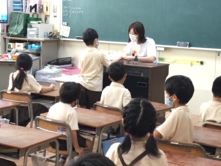 1学期終業式の日を迎えました。1年生は初めての通知表が渡されました。担任の先生から1学期にがんばっていたことなど、励ましの言葉を掛けられながら通知表を受け取っていました。
