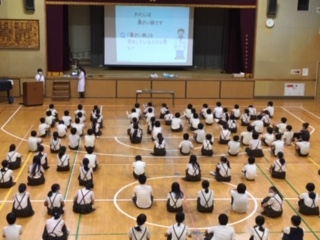 6年生はマーチングの練習を公開しました。今年度は練習の開始が遅くなりましたが、ここからの成長がとても楽しみです。また、薬剤師さんを講師にお招きして、「薬の正しい使い方」講座をしていただきました。薬が体の中でどのように作用するのか、またどんなことに気をつけて服用すればよいのか、薬を溶かす実験を交えながらわかりやすく教えていただきました。