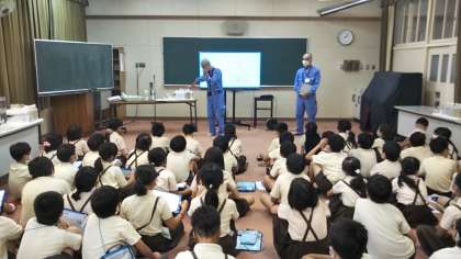 水道局の方にお越しいただき、おいしい水になるまでの経過について実験を通して、学びました。ろ過を通して、きれいになりにおいが消えた水に驚きの声が聞かれました。
