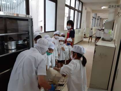 今日のカレーライスは、小麦アレルギーのお友達も同じものが食べることができるように、