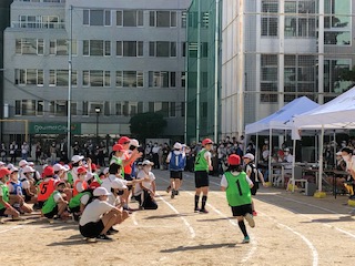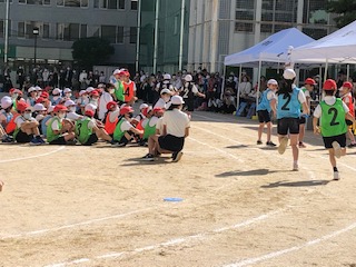 4年生は、玉入れ・台風の目・リレーに出場しました。