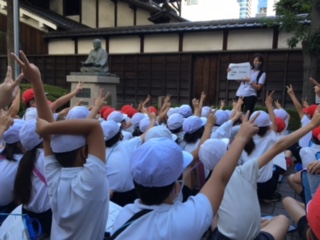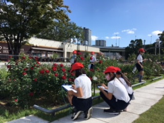 天気に恵まれ、絶好の遠足日和となりました。4年生は中之島公園と適塾をめざして出発です。中之島公園では、広場で思いきり体を動かしたり、バラ園でスケッチをしたりして楽しみました。適塾では緒方洪庵の業績について学びました。最後には担任の先生から洪庵クイズがあり、盛り上がっていました。学校に戻ると、校長先生がお出迎え。サプライズで校長先生の得意技「こま回し」の披露がありました。技が決まるたびに大きな歓声が上がりました。みんな笑顔で楽しい一日になりました。