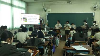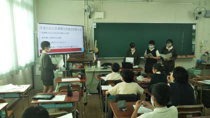 堀川地域をもっと素晴らしい地域にするために、自分達にできることは何か。ごみ問題や天神橋筋商店街の今後のあり方について、グループでプレゼンテーションを作成し、議論しました。