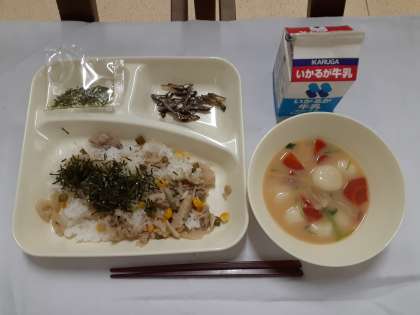 今日の給食には、「ごまめ」と「ぞう煮」がでました。